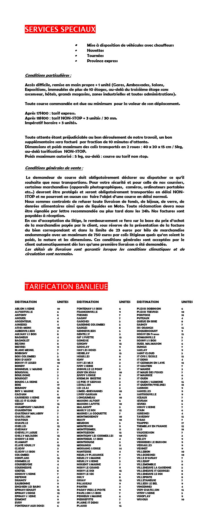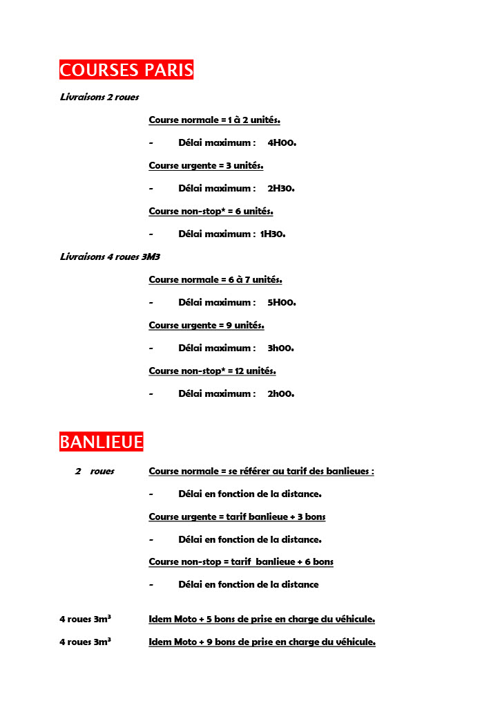 Nos tarifs